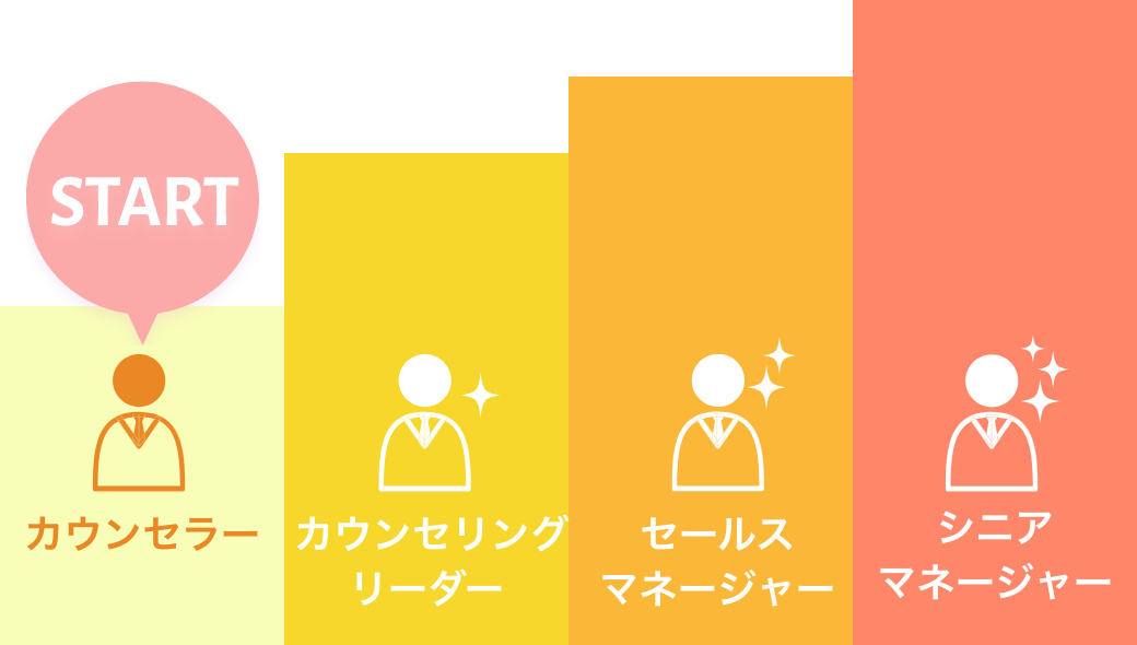 カウンセラーの最高責任者として、売上管理のみならず組織を大きく動かすことが求められます。ときには経営者陣とも議論し、会社をより良くするために尽力いただきます。